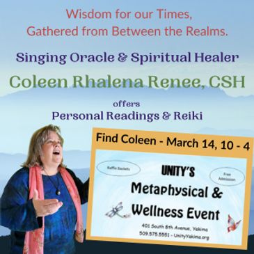 Coleen can be found at Psychic & Wellness Fairs, workshops, song & earth celebrations. She often sings the land.